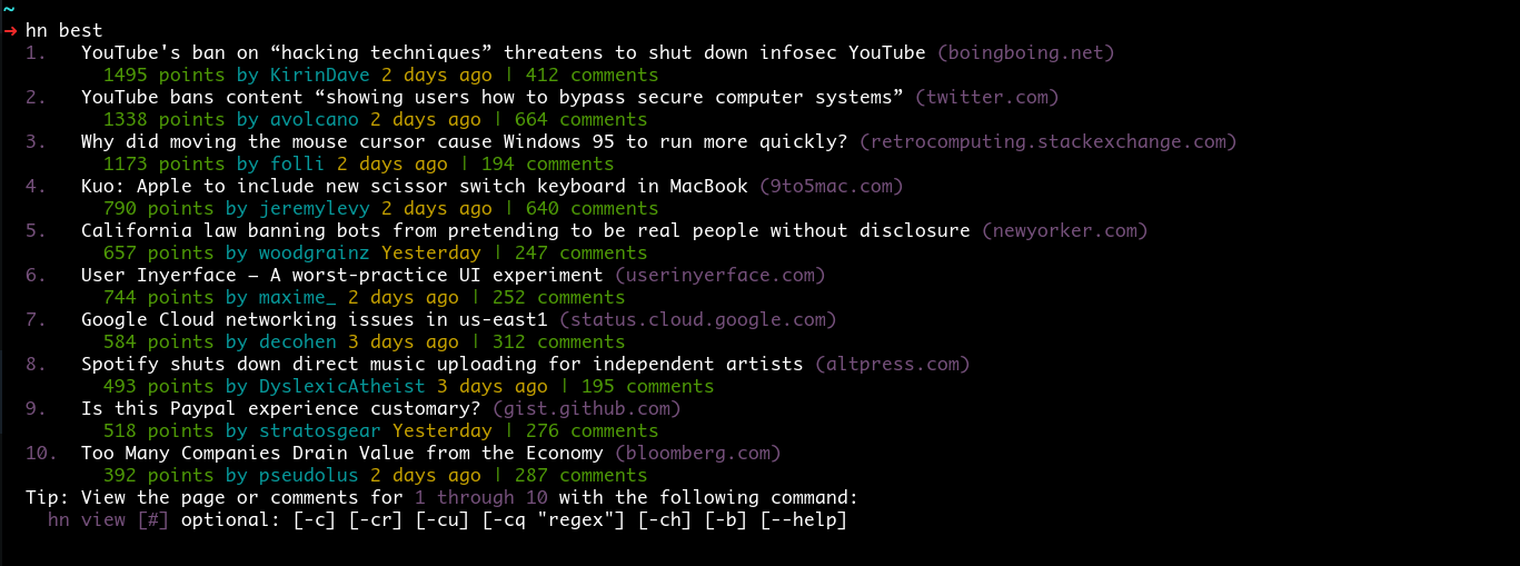 This is one of my favorite HN cli.